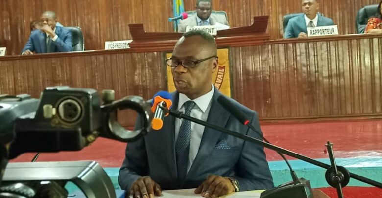 Le gouverneur de la province du Kasaï-Oriental, Jean Paul Mbuebua Kapo lors de l’investiture de son gouvernement à l’assemblée provinciale, le 29 juillet 2024.