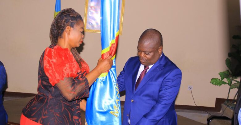 Cérémonie de remise et reprise entre le gouverneur du Maniema, Moussa Kabwankubi Moïse et la ministre provinciale de l’agriculture pêche et élevage, gouverneur intérimaire. Juillet 2024.